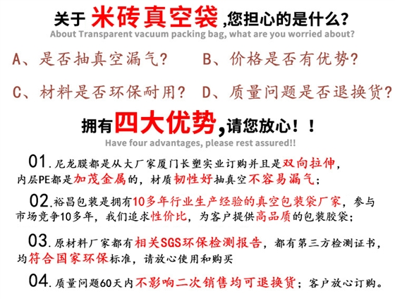 袋子实际成品会有百分之十上下浮动、货款以实际生产数量结算,如果对数量有严格要求请提前告知!货品收到后请仔细核对,如有疑问随时联系客服,我们会给您一个满意的解决方案!